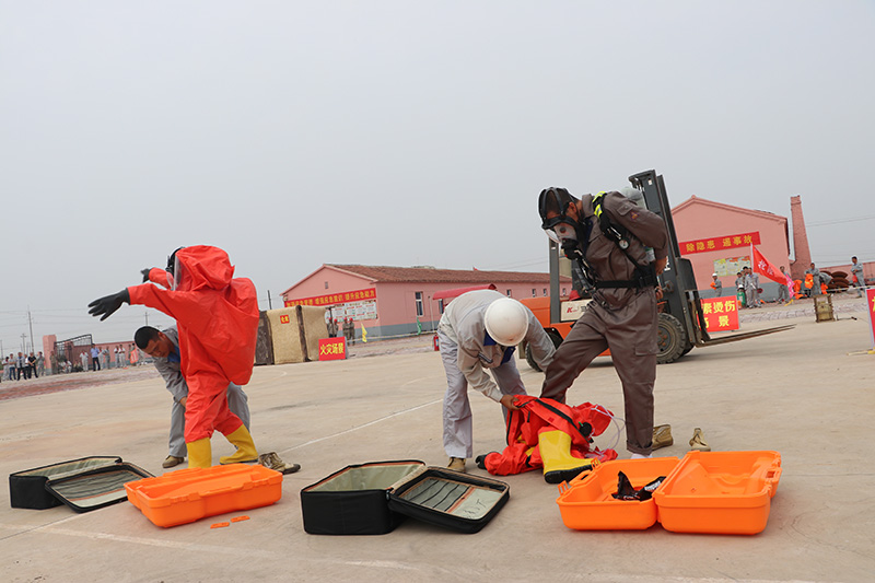 本次參加實戰(zhàn)演練的隊員40余人。活動模擬了機械傷害、中暑、觸電、火災(zāi)、溴素燙傷、氯氣泄露等6個事故場景。在應(yīng)急救援指揮部的統(tǒng)一指揮下和各應(yīng)急救援隊員的準(zhǔn)確處置下,人員得到了有效疏散,傷員得到了及時救助,事故得到有效控制,全面檢驗了指揮調(diào)度效率和救援隊伍的應(yīng)急實戰(zhàn)水平,確保了遇到突發(fā)事件能“拉得出、攻得上、打得贏”。演練同時還進行了消防技能、空呼機穿戴、防化服穿戴、空呼機穿戴30米跑等比武活動。