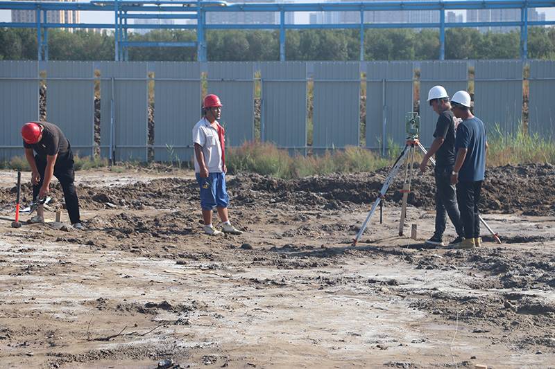 自5月份取得各項(xiàng)施工資質(zhì)后,建筑工程公司便積極參與建筑市場(chǎng)的競(jìng)爭(zhēng),并于6月1日與河北啟邦機(jī)械制造有限公司簽訂了大口徑鋁鎂合金螺旋焊管1#檢測(cè)車(chē)間的施工合同。為了確保工程順利實(shí)施,建筑工程公司及時(shí)成立了項(xiàng)目籌建部,積極協(xié)助河北啟邦機(jī)械制造有限公司跑辦施工許可證,溝通工程相關(guān)事宜,并提前做好了路面硬化、項(xiàng)目部設(shè)置、防疫等工作。施工許可證辦結(jié)后,9月4日,安全、質(zhì)檢、測(cè)量等人員正式入駐施工現(xiàn)場(chǎng),拉開(kāi)了工程建設(shè)序幕。截至9月8日,已完成放線和打樁工作。目前,測(cè)量人員正在對(duì)因樁機(jī)震動(dòng)造成放線點(diǎn)位的可能誤差進(jìn)行復(fù)線矯正,待復(fù)線完工后,將依次進(jìn)行開(kāi)槽、基礎(chǔ)施工和鋼結(jié)構(gòu)施工。預(yù)計(jì)11月15日前完成全部工程施工。