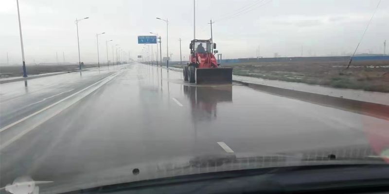 由于正值雨季,臨港東區(qū)施工路段路面殘留大量泥土,因工程車輛較多,很難去除干凈。工程公司為切實加強雨季道路交通安全,全力消除交通安全隱患,確保道路通暢,組織一線職工一邊用鏟車清理道路淤泥,一邊用灑水車進行沖洗。
